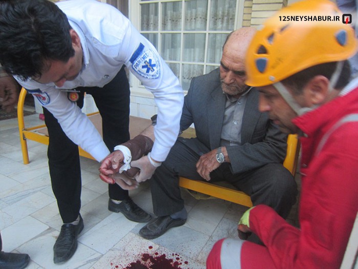 در این حادثه مچ دست راست این فرد آسیب دید و دچار خونریزی شد .