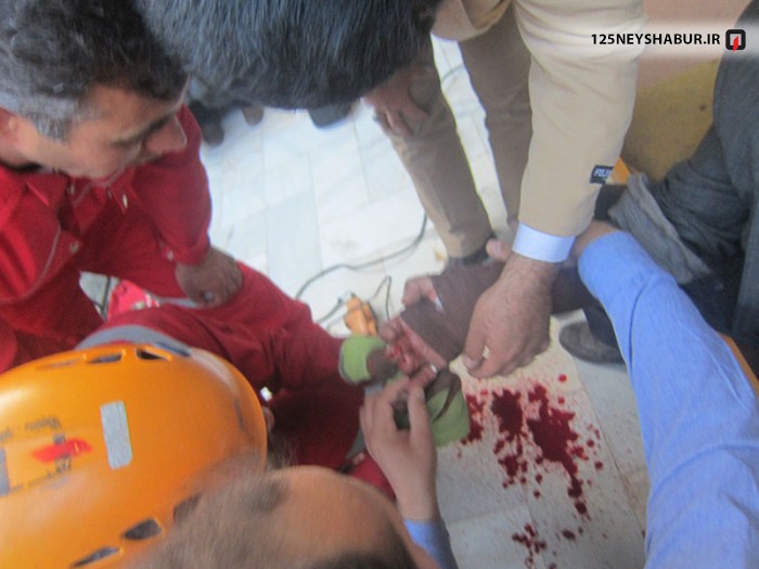با اعلام این حادثه به ستاد فرماندهی آتش نشانی نیشابور یک تیم از نجاتگران آتش نشان به محل اعزام شدند . این بالابر که از هیچ گونه محافظی برخوردار نبود مورد استفاده ساکنین منزل بود که متاسفانه عدم رعایت استانداردهای لازم و محافظ مناسب موجب گیر کردن دست این مرد از ناحیه مچ در بین دو قوطی فلزی شده بود .