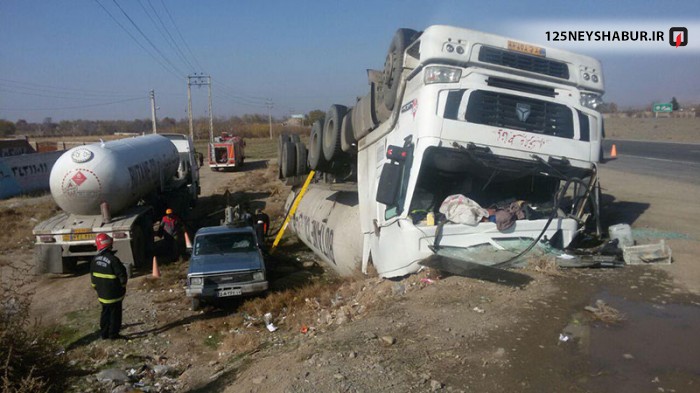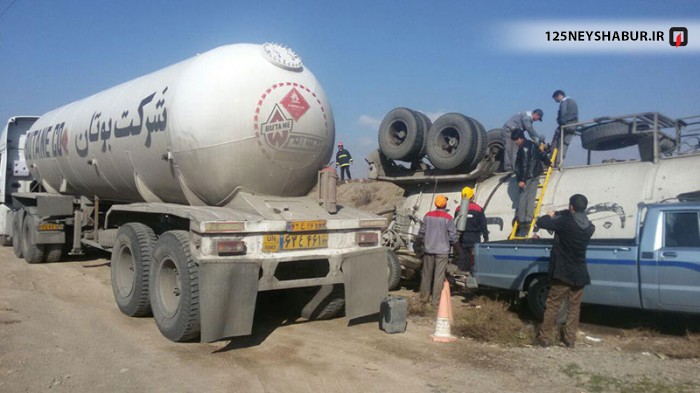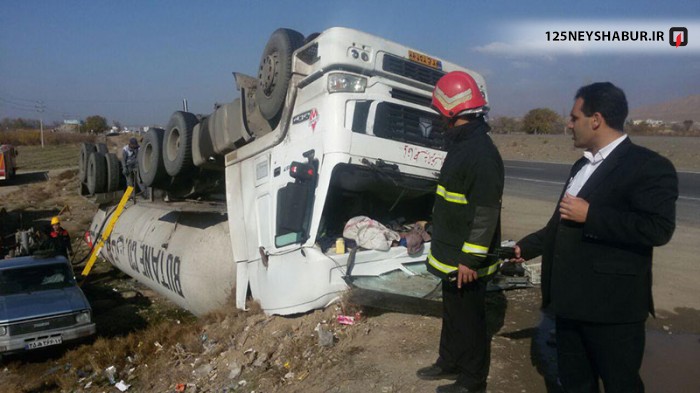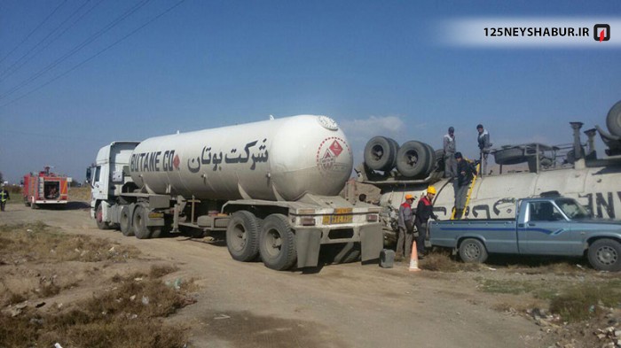 واژگونی یک تانکر حامل گاز مایع در جاده نیشابور به مشهد حالت فوق العاده در محل ایجاد نمود .