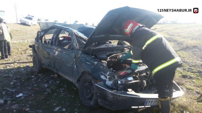 واژگونی خودروی پژو روآ در کیلومتر 10 جاده جدید سبزوار