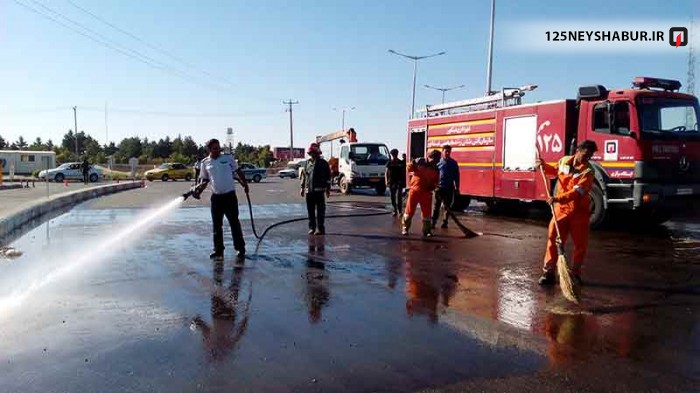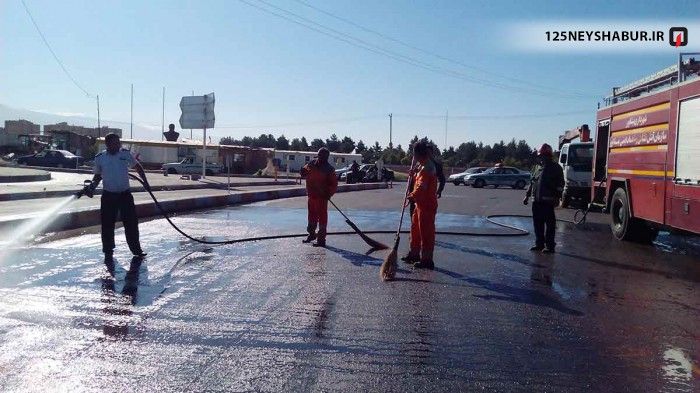 سید مهدی حسینی مدیر عامل آتش نشانی گفت : در اثر این حادثه گازوئیل باک نیسان در سطح آسفالت پخش شده بود و با توجه به محل وقوع حادثه در دور میدان خطر لغزش و تصادف سایر خودروها وجود داشت لذا با اعزام یک دستگاه خودرو آتش نشانی از ایستگاه شماره 5 و همکاری نیروهای خدمات شهرداری سطح آسفالت شستشو و جارو کشیده شد .