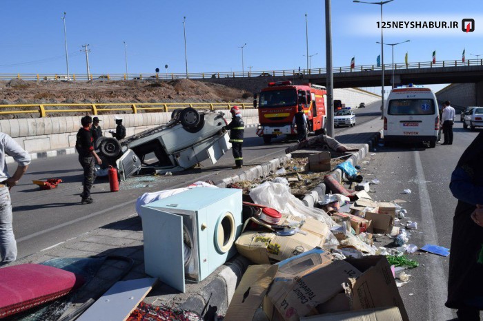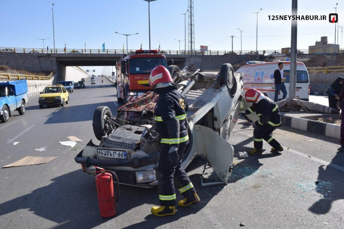 یک دستگاه خودرو وانت پیکان که در بلوار امام رضا در حرکت بود در زیر گذر میدان باغرود نیشابور واژگون شد .