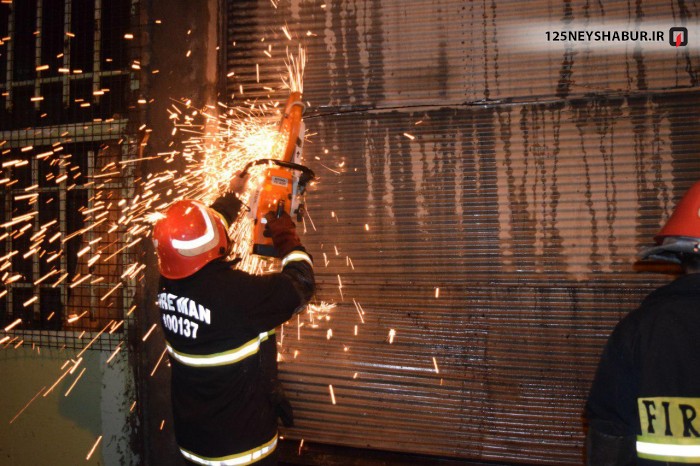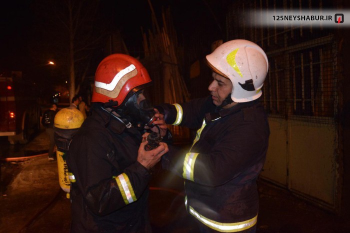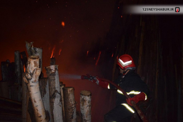 تصاویر شب سخت آتش نشانان در آتش سوزی چوب بری میدان فردوسی نیشابور