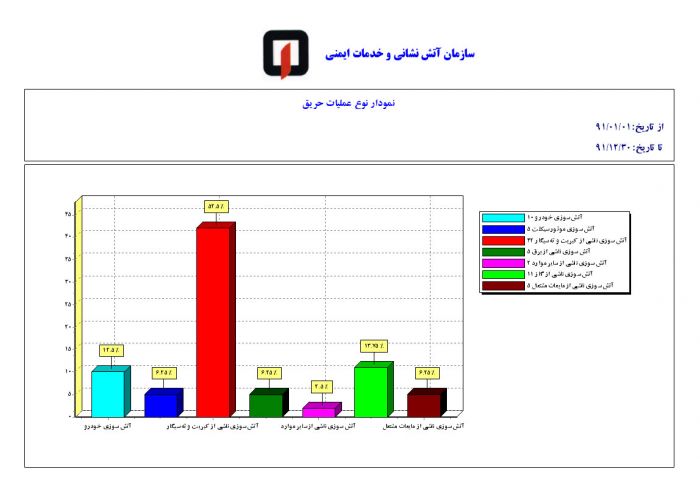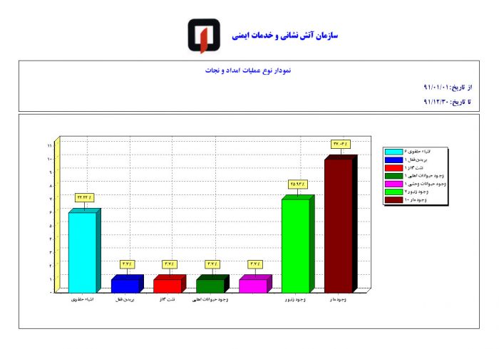 تصاویر نمودار آمار آتش سوزی و حادثه ایستگاه شش در سال 91